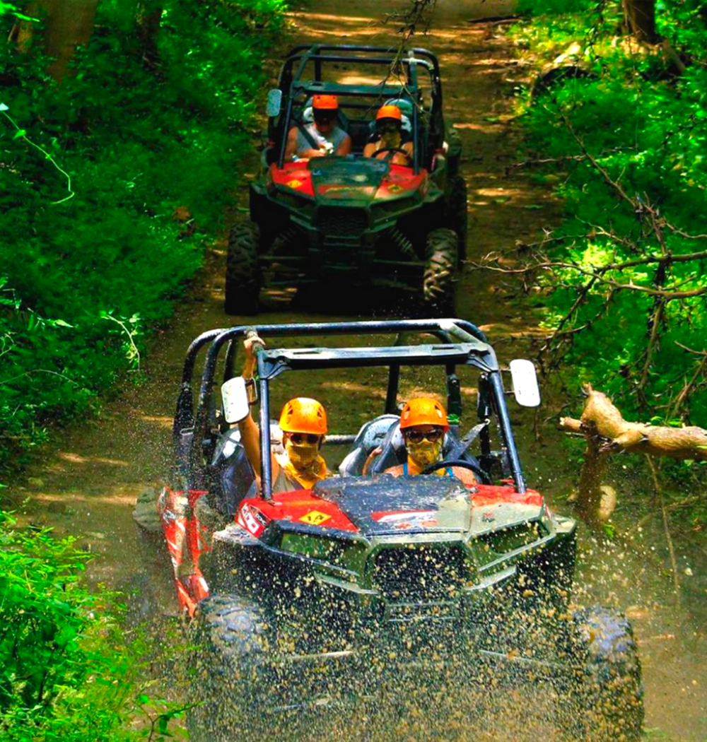 Contamos con un circuito de razers, cuatrimotos y bicicletas, tirolesa, muro de escalada y nuestro impresionante tour en la selva en donde conocerás sobre las leyendas mayas de esta región.