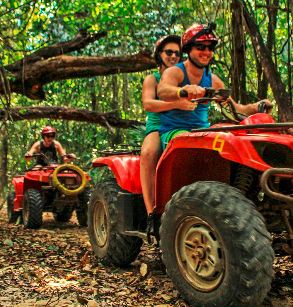 Contamos con un circuito de razers, cuatrimotos y bicicletas, tirolesa, muro de escalada y nuestro impresionante tour en la selva en donde conocerás sobre las leyendas mayas de esta región.